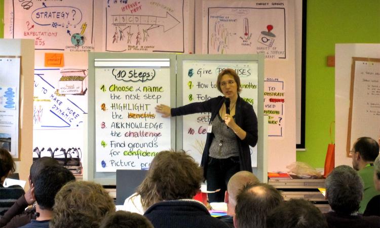 Een sterk bedrijf verandert en evolueert voortdurend. Mensen daarentegen vinden verandering bedreigend. Daardoor staan ze de noodzakelijke processen in de weg. Een organisatie moet dat consistent van binnenuit aanpakken, vooraleer de problemen naar buiten gaan etteren. ‘Voor 85% van de wrijvingen en conflicten op de werkvloer zijn geen consultants nodig. De betrokkenen kunnen die zelf oplossen en ombuigen naar florerende samenwerkingen,’ is haar boodschap.